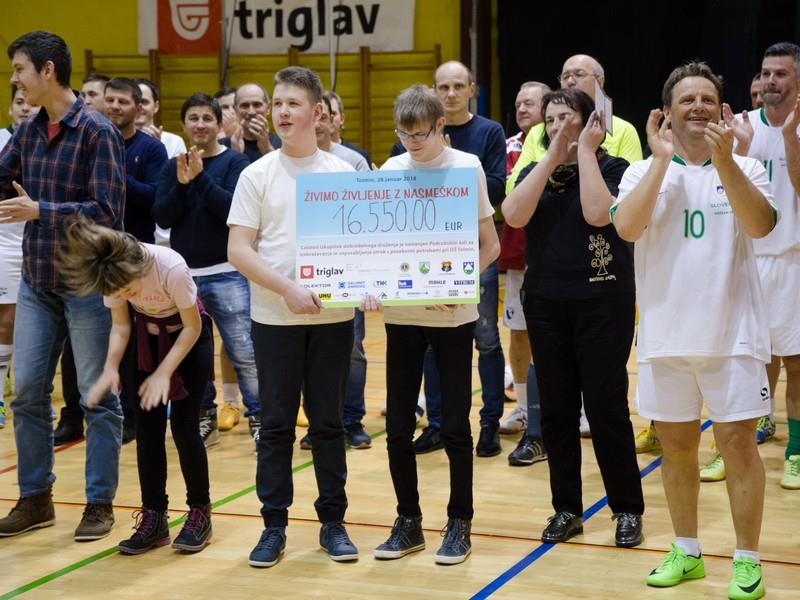 Seveda pa je šlovseskozi le za odličen spektakel, ki v sebi ni nosil tekmovalnosti in želje po zmagi v obliki golov, temveč eno samo veliko željo po zmagi z višino zbranih sredstev. In ta zmaga je bila resnično najslajša in veličastna, saj je bilo zbranih samo prostovoljnih prispevkov več kot 6000,00€, skupaj s pokrovitelji, ki so navedeni v priponki, pa je bilo zbranih 16.550,00€.