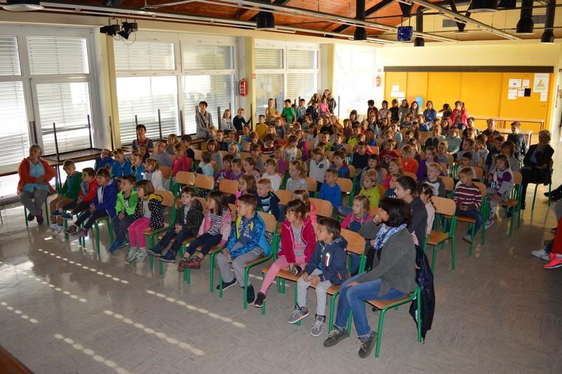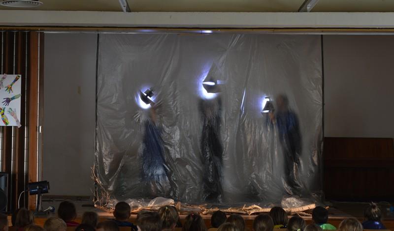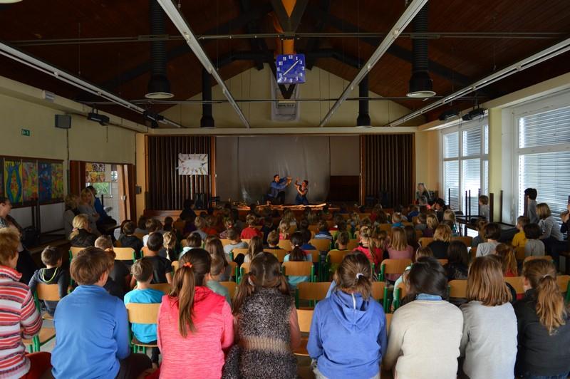 Danes so v večnamenskem prostoru Osnovne šole Bovec učenci od prvega do petega razreda in vrtčevski otroci lahko uživali v zanimivi gledališki predstavi.