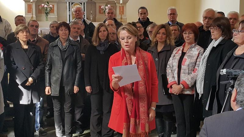 Častna pokroviteljica projekta je svetovna znana umetnica Bernarda Fink, ki je v Logu pod Mangartom prebrala POSLANICO.