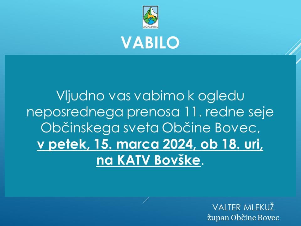 VABILO K OGLEDU 11. REDNE SEJE OS OBČINE BOVEC