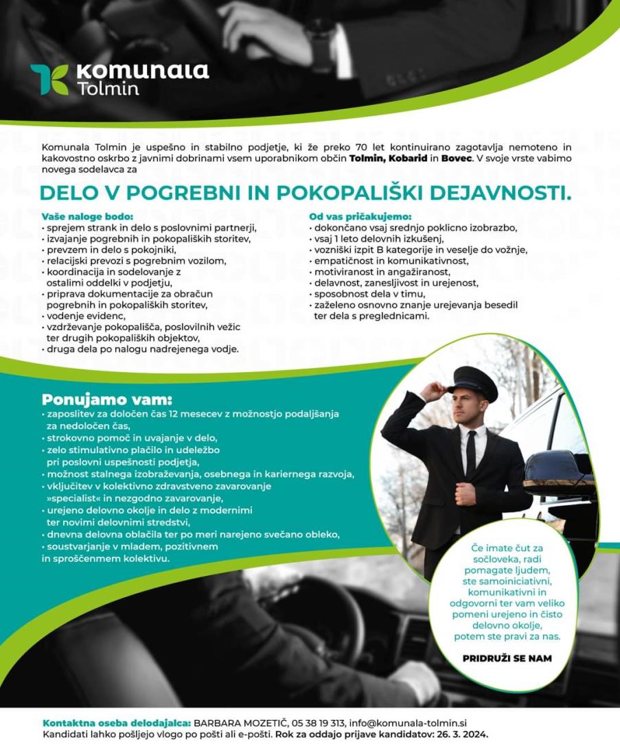 PROSTO DELOVNO MESTO PRI KOMUNALI TOLMIN