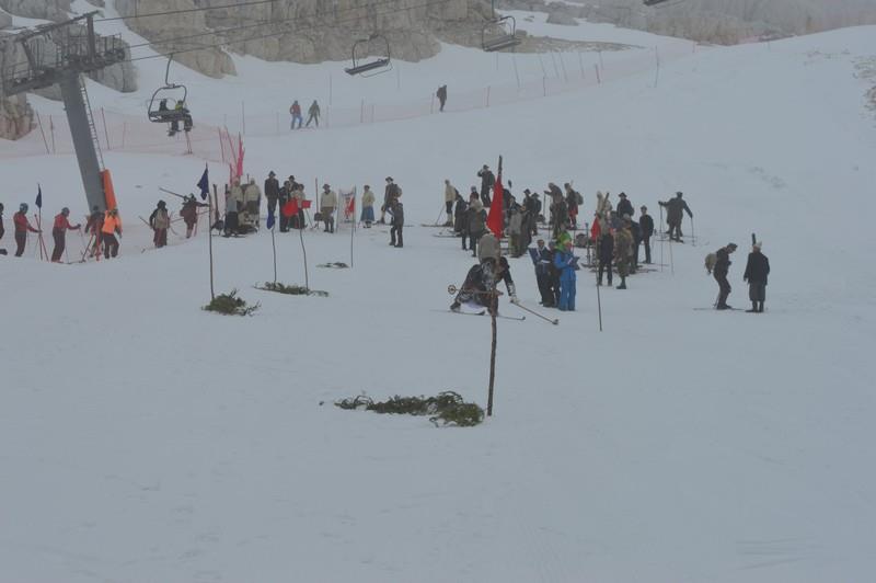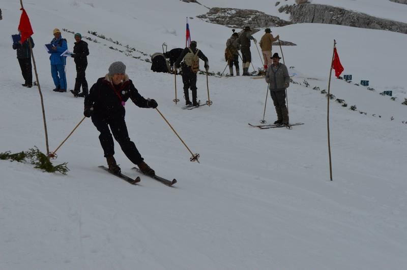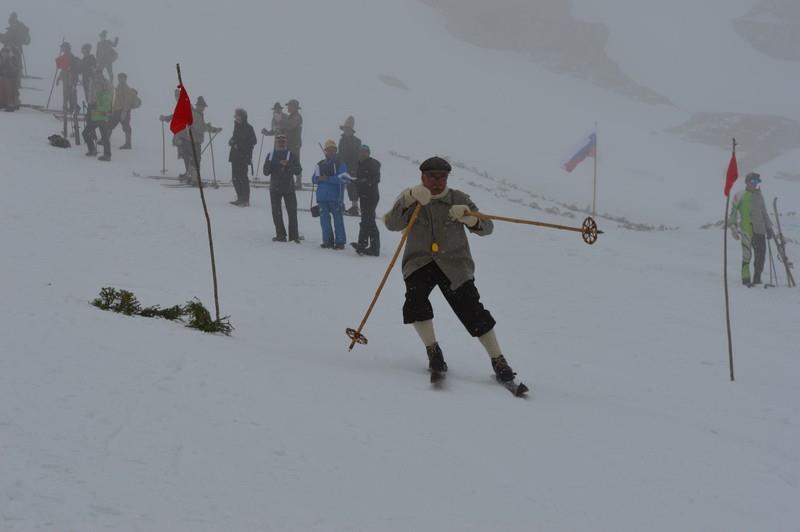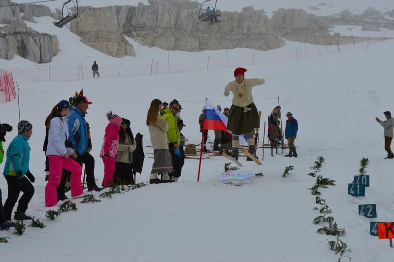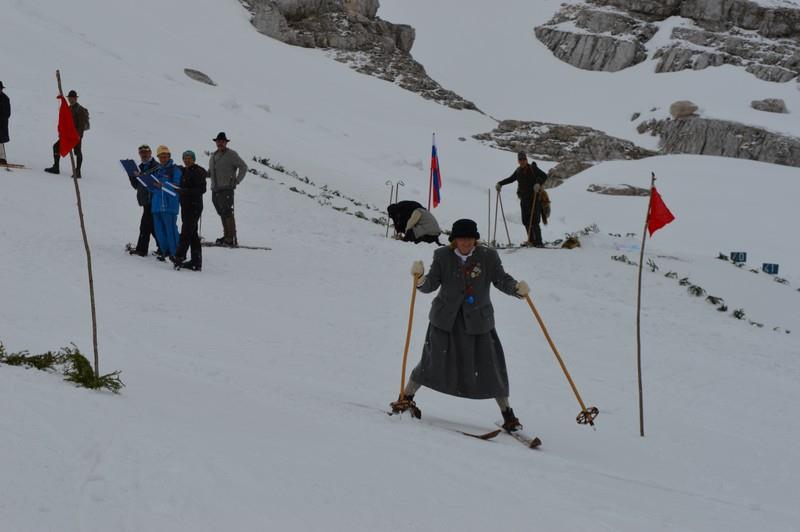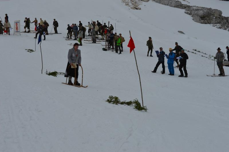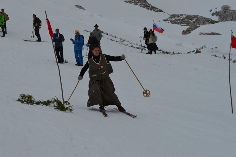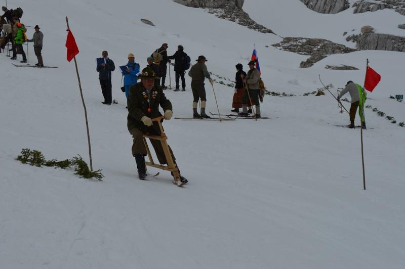 Starosvetni smučarji so se nato peš podali skozi center Bovca do A postaje krožnokabinske žičnice in z njo pod Prestreljenik. Z odlično pripravljeno tekmo so poskrbeli za veliko lastnega veselja in zabave, nadvse pa so bili navdušeni tudi vsi gledalci in »navijači«, med njimi je bil ves čas tudi župan Občine Bovec Valter Mlekuž, ki so glasno spodbujali čisto vse tekmovalce. Po slalomski tekmi so sledili še atraktivni skoki, na odlično pripravljeni skakalnici pa so bili tudi nekateri skoki vredni vsega občudovanja. Dodano vrednost je s svojimi hudomušnimi komentarji obema tekmama dodal glavni komentator Boris Zorko.