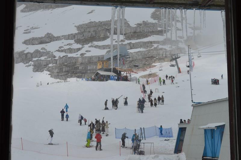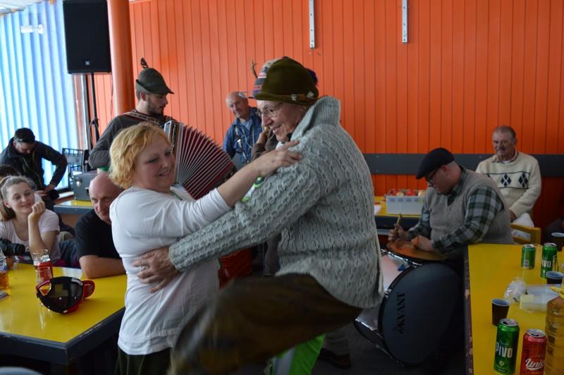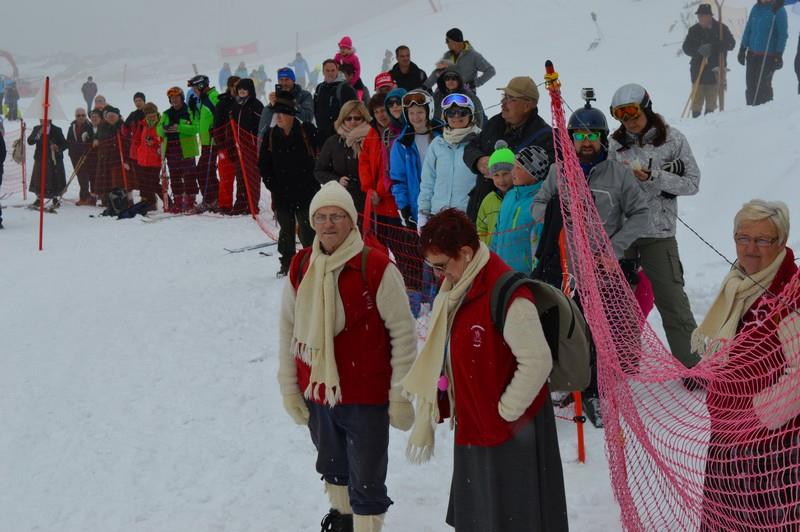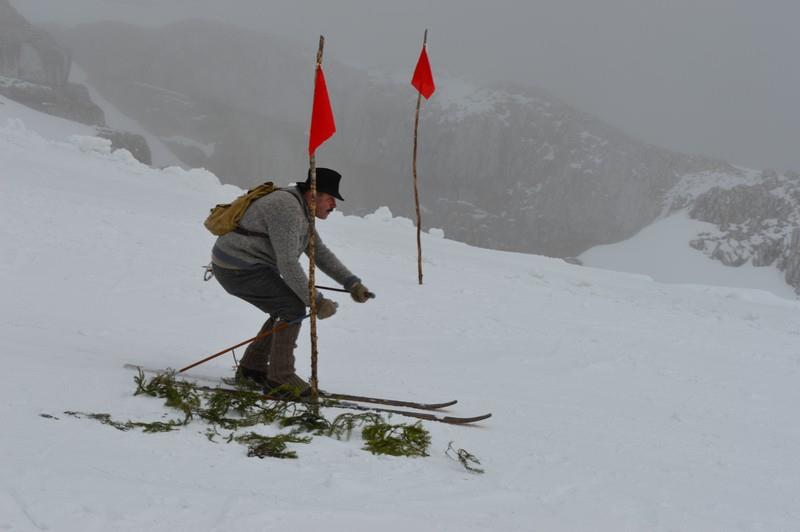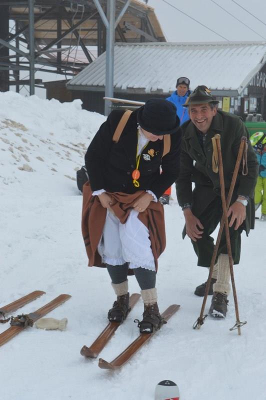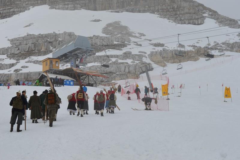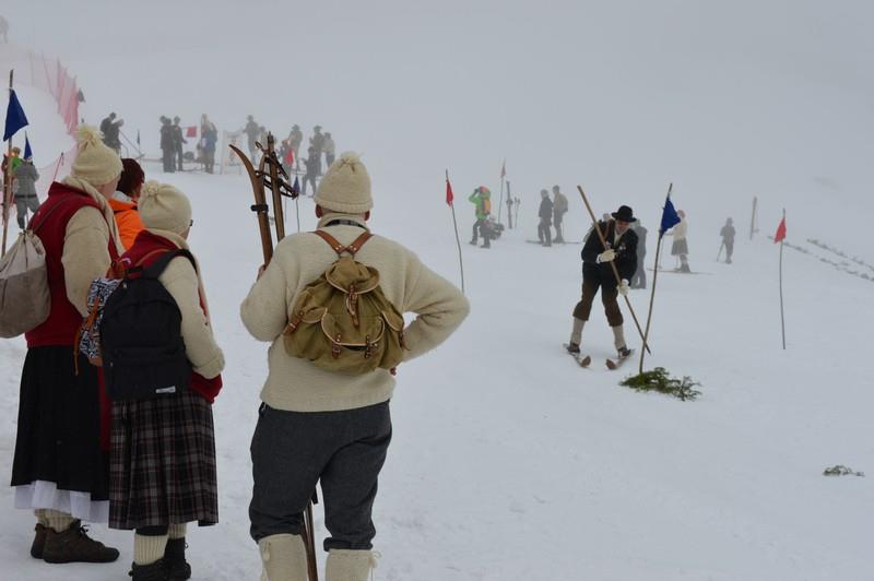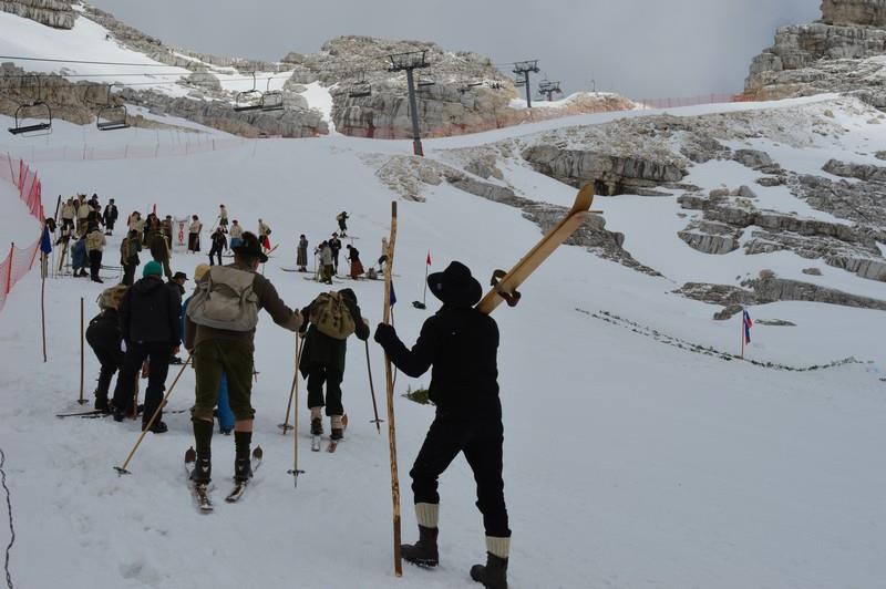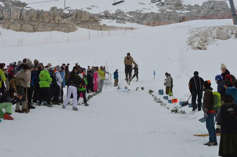 Starosvetni smučarji so se nato peš podali skozi center Bovca do A postaje krožnokabinske žičnice in z njo pod Prestreljenik. Z odlično pripravljeno tekmo so poskrbeli za veliko lastnega veselja in zabave, nadvse pa so bili navdušeni tudi vsi gledalci in »navijači«, med njimi je bil ves čas tudi župan Občine Bovec Valter Mlekuž, ki so glasno spodbujali čisto vse tekmovalce. Po slalomski tekmi so sledili še atraktivni skoki, na odlično pripravljeni skakalnici pa so bili tudi nekateri skoki vredni vsega občudovanja. Dodano vrednost je s svojimi hudomušnimi komentarji obema tekmama dodal glavni komentator Boris Zorko.