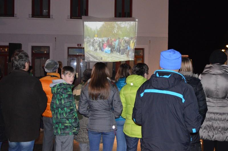 Božični dogodek je v kulturnem programu na bovškem trgu vedno tudi tematsko obarvan. Letos so po zamisli in z zgodbo Erne Germovšek Wojčicki izvajalci potegnili vzporednico bega Jožefa in Marije v Betlehem z begunstvom prebivalcev Posočja med prvo svetovano vojno v Bruck an der Leith, hkrati pa tudi z današnjimi begunci, ki v begu pred vojno in uničenjem prihajajo v Evropo.