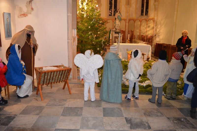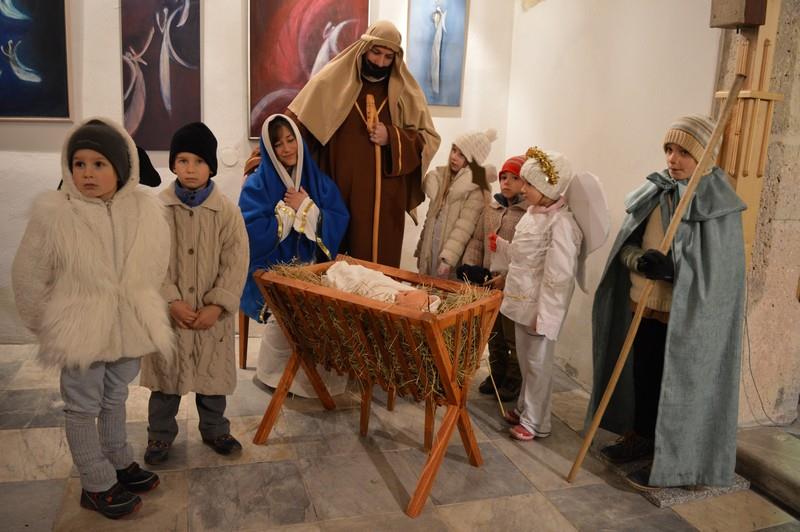 Zgodbo sta pripovedovali Erna Germovšek Wojčicki in Tea Jojić, božične pesmi je prepeval Cerkveni pevski zbor Tolmin, otroci prvega razreda OŠ Bovec pa so uprizorili jaslice. Špela Kenda, Magda Černuta in Miranda Černuta so uprizorile vrnitev Špele iz sprejemnega centra za begunce, kjer je delala kot prostovoljka Rdečega križa Slovenije.