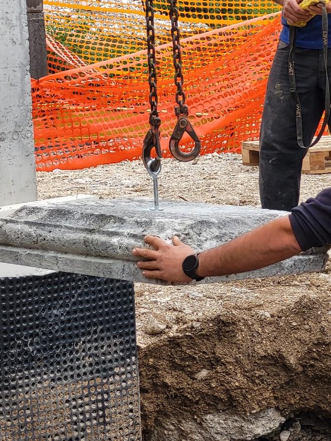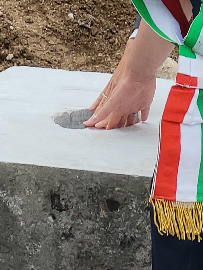 Po uvodnih pozdravih so za položitev temeljnega kamna v kovinsko posodico najprej zapečatili podpise vseh učencev aktualne osnovne šole, oljčno vejico in še nekaj drugih malenkosti, nato pa položili betonski podstavek na za to pripravljeno mesto. Temeljni kamen, ki so ga položili na betonsko kocko, je del nekdanje cerkve v Njivah, ki je bila porušena v potresu leta 1976. Tako je simboličen pomen tega dejanja preteklost v sedanjosti uporabiti za prihodnost, kot je dejal župnik v Reziji don Alberto Zanier.