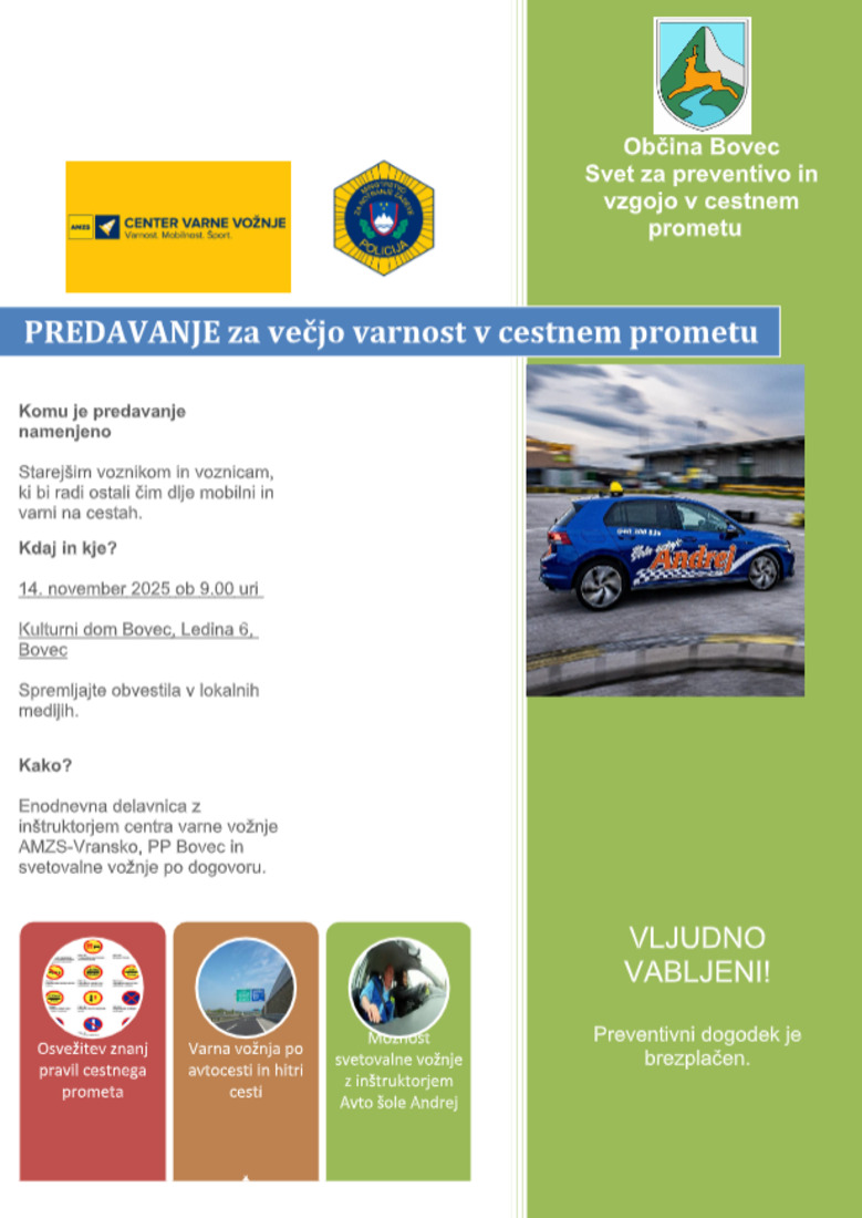 Predavanje za večjo varnost v cestnem prometu
