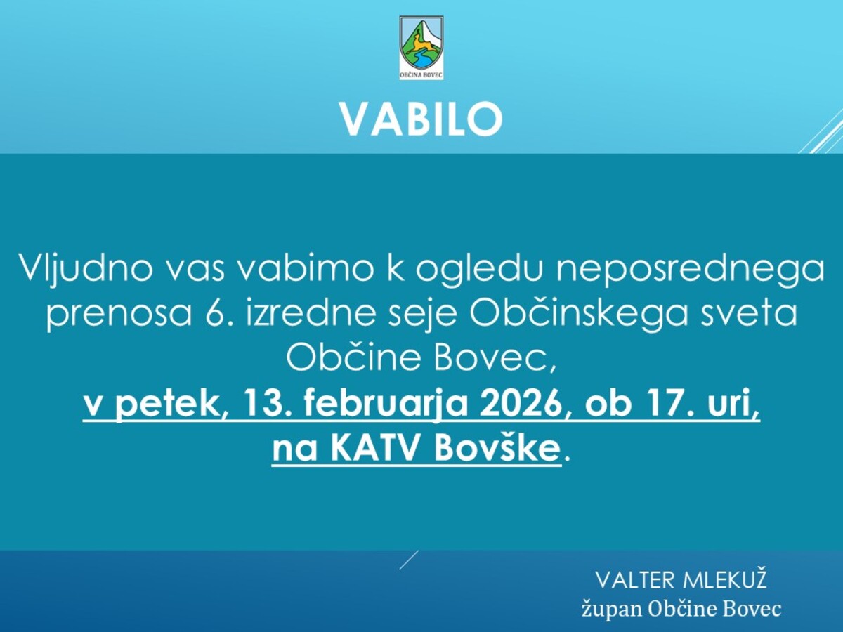 VABILO K OGLEDU NEPOSREDNEGA PRENOSA 6. IZREDNE SEJE OS OBČINE BOVEC