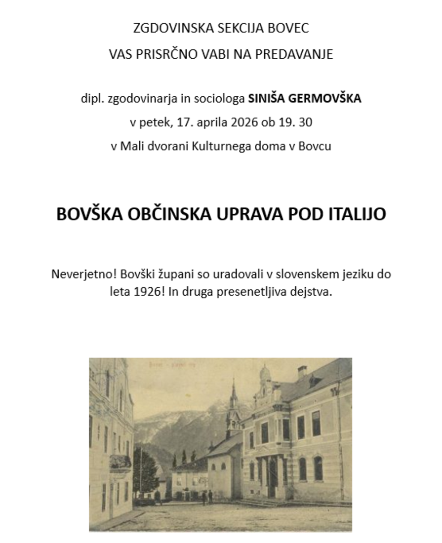 Predavanje: BOVŠKA OBČINSKA UPRAVA POD ITALIJO