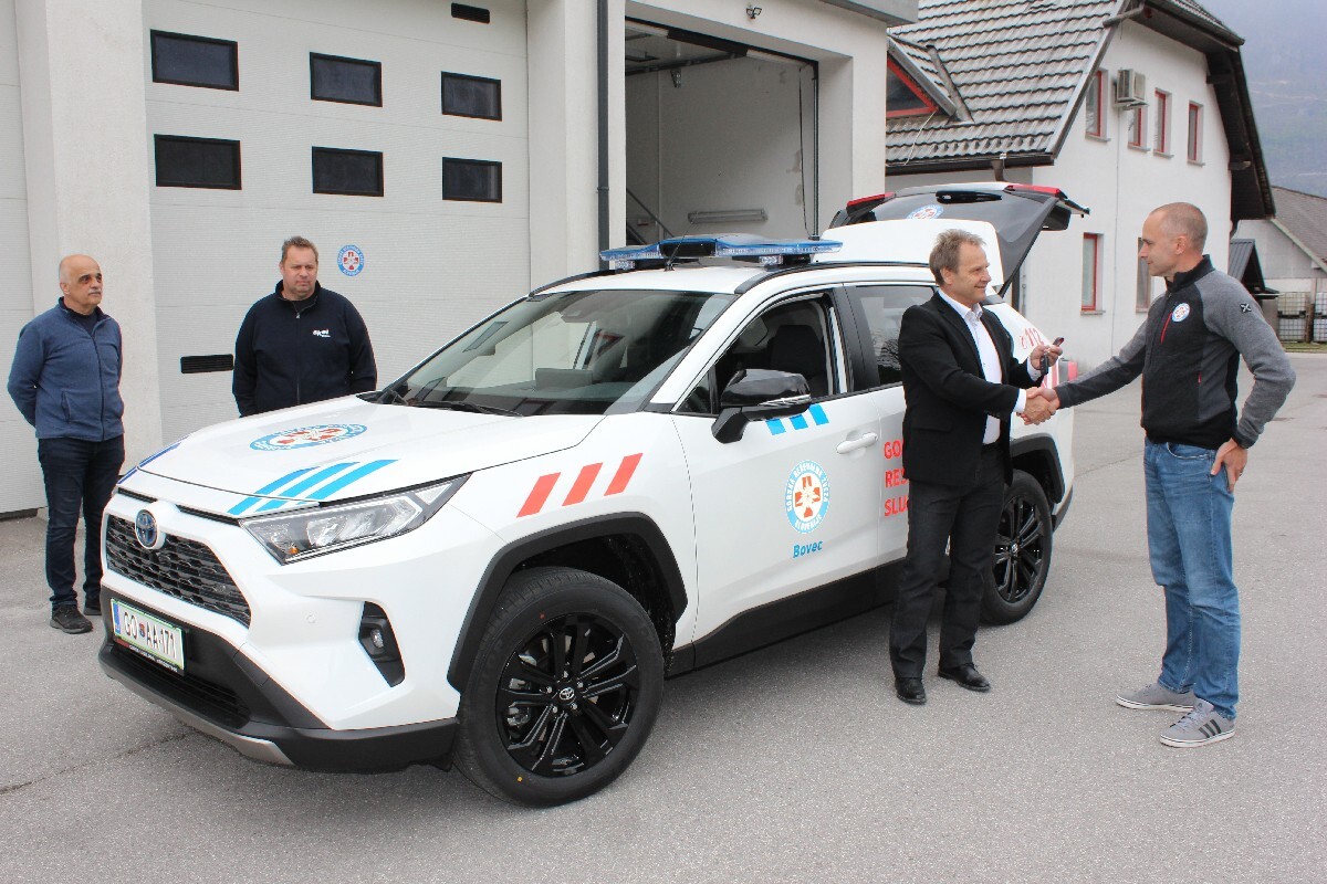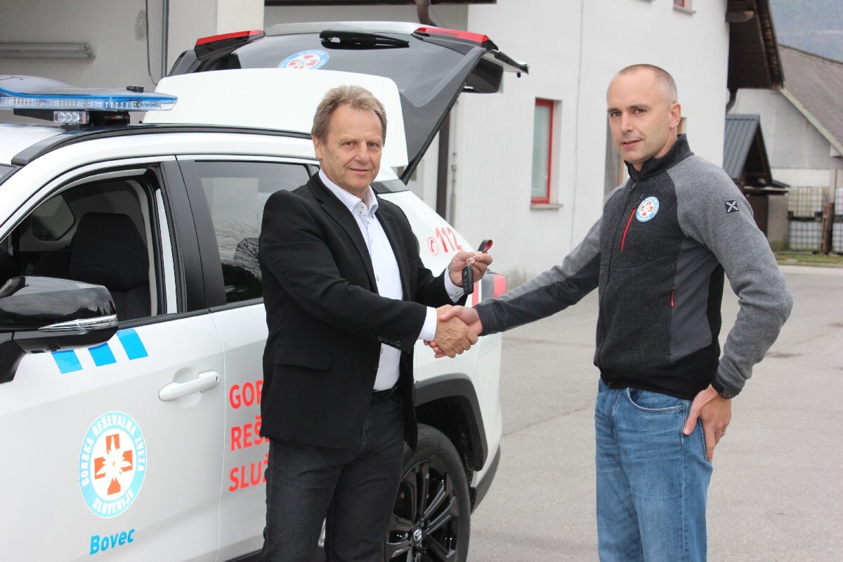 Načelnik Društva GRS Bovec Robert Vončina je danes od župana Občine Bovec Valterja Mlekuža tudi uradno prevzel novo vozilo Toyota RAV4. Stara Dacia Duster ni več zadoščala za namene številnih zahtevnih reševanj, ki jih izvaja Društvo GRS Bovec na izjemno zahtevnih terenih, zato je bil med Občino Bovec in Društvom GRS Bovec hitro sklenjen dogovor za nakup novega vozila. Občina Bovec je za nakup vozila odštela 39.500,00€, Društvo GRS Bovec pa je za nadgradnjo dodalo še 6.000,00€. Župan Občine Bovec Valter Mlekuž ob tem še enkrat poudarja, da on sam in Občina Bovec vedno podpirata vse reševalne službe znotraj sistema Civilne zaščite, saj so ob različnih nesrečah številna življenja največkrat odvisna prav od hitrega posredovanja požrtvovalnih reševalcev, ki pa svoje prostovoljno delo lahko opravljajo le z ustrezno opremo. Primopredaje so se danes ob županu Občine Bovec Valterju Mlekužu in načelniku Robertu Vončini udeležili še podžupan Erik Cuder, direktor Uprave Občine Bovec Sejad Jušić in poveljnik OŠ CZ Edi Melinc. Stara Dacia Duster bo prešla v last Občine Bovec in bo glede na starost služila za službene prevoze v bližnji okolici.
