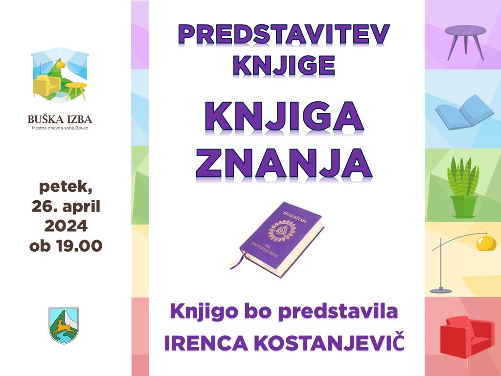 Knjigo znanja bo predstavila Irenca Kostanjevič.